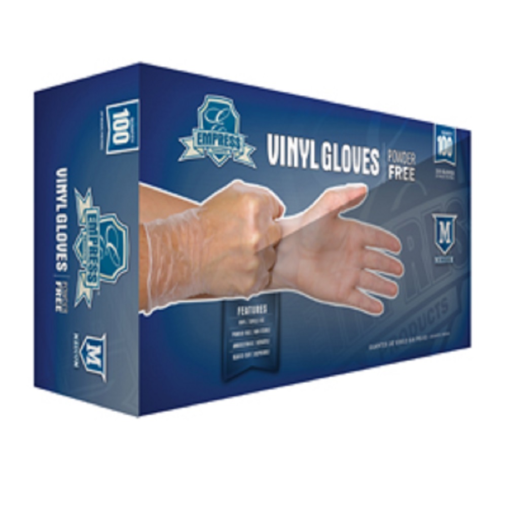 Empress Medium Powder-Free Disposable Vinyl Gloves- Box of 100