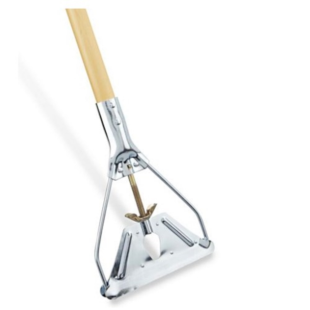 Wood Heavy Metal Quick Change 60″ Mop Handle -Quick release cross bar for quick changes and a secure hold.Made of heavy plated metal to prevent rust and corrosion. Designed using heavy-duty wing nut screw clamp. Use with Narrow-Band mops